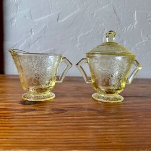 Hazel Atlas Florentine Yellow Depression Glass | Creamer & Sugar Bowl Set