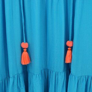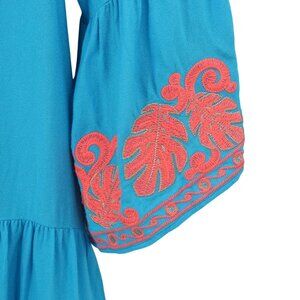 Turquoise dress with coral and gold metallic embroidery