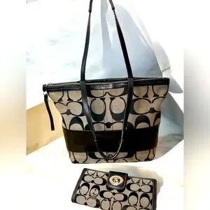 COACH signature stripe No. 12429 SHOULDERBAG tote VNTG and wallet