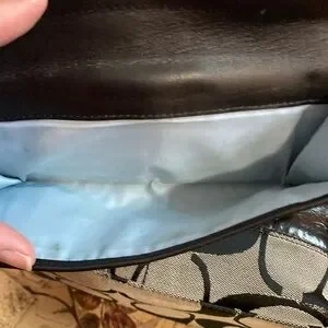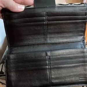Super cute, it is used see pics for imperfections. Lots of life left . Has slightly worn edges on bottom see pics Measure 10x10. 4 deep wallet has worn marks see pics I believe storage because use insider is clean on wallet see pics