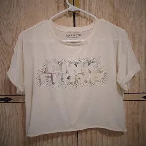 Pink Floyd Cropped Graphic Tee with Rhinestone Logo – Size L