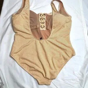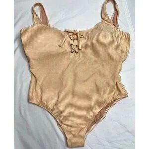 J.Crew $118 Lace Up One Piece Swimsuit Faded Stripe Size 22 AY281