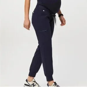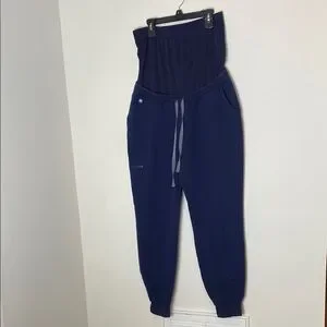 This is a great pair of scrub pants from Figs. Part of the technical collection. Navy blue. Jogger style. Maternity with belly band.