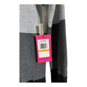 Soft, oversized with nice stretch knit sweater from Vince CAMUTO in color block black, gray and white with pockets and side slits. Long sleeve pull lover tunic style.