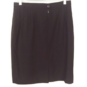 Escada Margaretha Ley Black pinstriped 100% Wool Skirt. Great gently used condition. Size 38 which is the smaller side of a medium(see size chart). Approximate Measurements are: