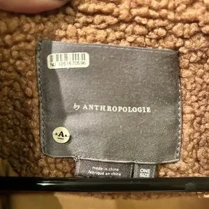 Embrace warmth and style with this Anthropologie teddy jacket, featuring a plush brown and pink design. The oversized fit and sherpa material ensure comfort and a relaxed look, making it an ideal choice for chilly days.