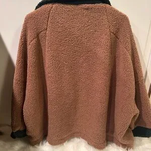 Anthropologie — Teddy Jacket Brown and Pink Cozy Oversized