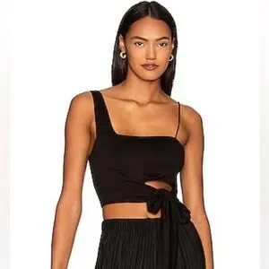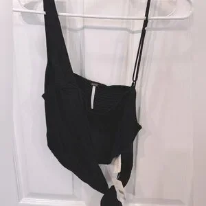 NWT Black one shoulder, crop top by Free People. Has an additional spaghetti strap that is optional and adjustable ties on the hip. Smocked back.