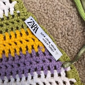 Zara Crochet Triangle Halter Top Womens Medium Summer Cover Up Festival Boho