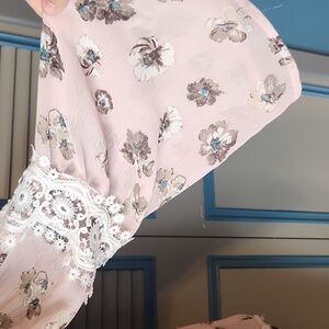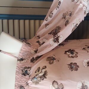 Love J Blush Pink Floral Cold Shoulder Sheer Blouse