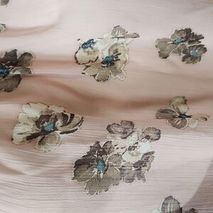 Soft blush pink base with a delicate floral print, perfect for versatile styling.