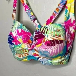 California Waves Hibiscus Paradise Multicolor Bikini Top 2X 20/22