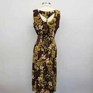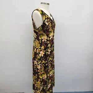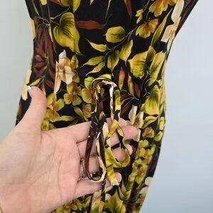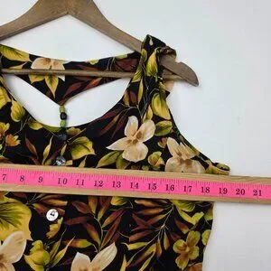 Vtg Scarlett Sleeveless Maxi Dress Womens 14 Black Yellow Hawaiian Floral Y2K