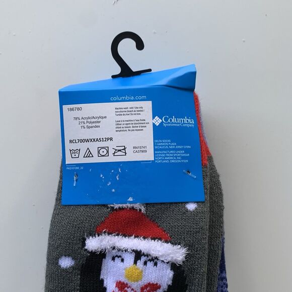 Columbia 2 Pair Christmas Crew Socks Pinguin Size 4-10 Multicolor New