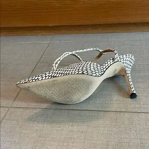 Tory Burch Penelope 100mm ankle-strap pumps in King Cobra printed leather. Stylish and elegant.