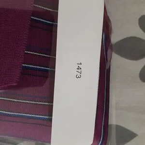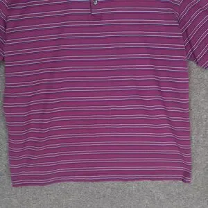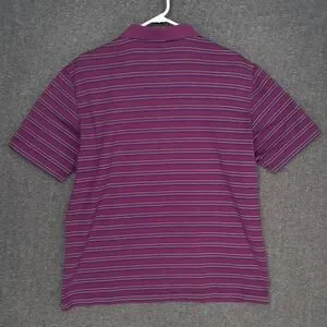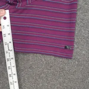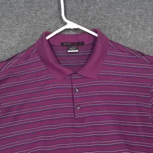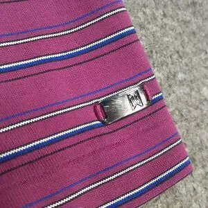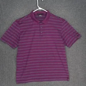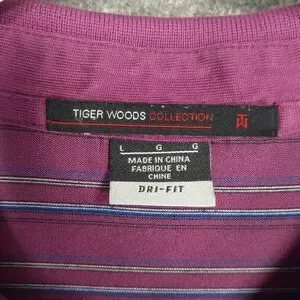RARE Nike Tiger Woods Collection SAMPLE Polo Shirt Adult L pink blue stripe S/S. Shirt has a bit of scratching on the metal arm logo. overall good condition. see photos for more details.
