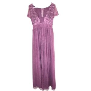 This elegant lace dress in a beautiful mauve shade is perfect for any special occasion. The delicate lace detailing adds a touch of sophistication.