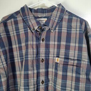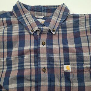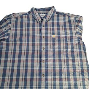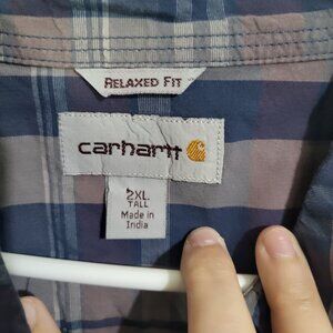 CARHARTT Men's 2XL Tall Plaid Long Sleeved Shirt Relaxed Fit Blue