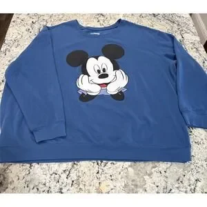 Disney Mickey Mouse Sweatshirt Women's 4XL Long Sleeve Crew Neck Graphic Blue