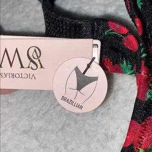 Victoria's Secret Black and Red Strawberry/ Cherry Bikini Set