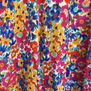 FOR LOVE AND LEMONS floral short sleeve summer dress. Pink, blue, orange, and yellow flowers. Cheerful and bright! Elasticized slightly puffed shirt sleeve. Size small. Excellent condition