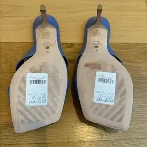 Never worn outside! Smooth straps crisscross atop a sophisticated, contemporary sandal lifted by a stiletto heel. 3" heel Leather upper/synthetic and leather lining/leather sole.