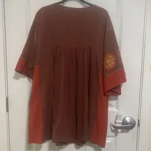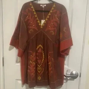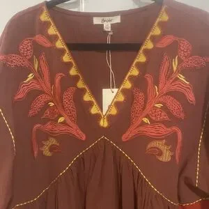 Beautiful stitch embroidered brown Cotton&Linen mini dress NWT