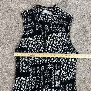 Buster N Bogi Dress 0X Black White Batik Button Front Sleeveless Flowy Floral