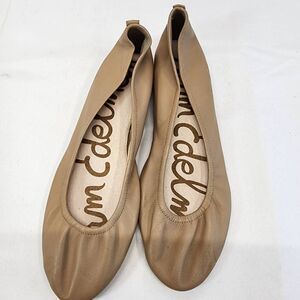 Sam Edelman Womens Fritz Ballet Flats Size 9.5M Beige Leather Slip on Shoes
