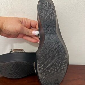 NAOT women’s leather wedge sandal in size 39 (8.5) The sandals are in gently worn condition. Does feature a small wedge. Offer is welcome.