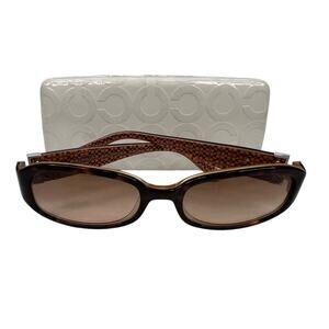 Elevate your eyewear collection with these COACH Sunglasses. Crafted in a chic brown pattern, these sunglasses effortlessly blend luxury and style. Enjoy the peace of mind that comes with scratch-resistant lenses, ensuring your shades stay flawless no matter where life takes you. Perfect for sunny days or adding a touch of glamour to any outfit.