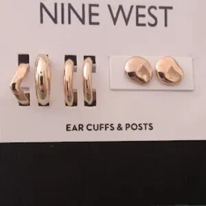 ONLY **1** SET/LOT LEFT!!! NEW!!! NINE WEST 5pc SET/LOT Mod/Contemporary Gold Ear Cuffs & Stud Earrings**Ear Cuff & Stud Set includes 5 Items! All of the Ear Cuffs and the Stud Earrings are Gold! Trial and experiment with fake piercings; no needles necessary - just interchangeable style! The Ear Cuffs give you the look without the piercings! Get the Mod/Contemporary Look you Love!**NEW ON HANG TAG!