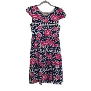 Anthropologie Maeve Peralta Flared Dress Bird Floral Size 2 Pockets Fit & Flare