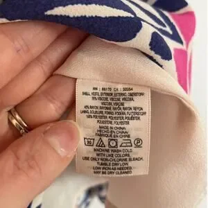 Cream with Navy and Pink Bird and Floral Print