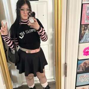 The Grave Girls Striped Skull Long Sleeve Mock Neck Top - Pink/Black