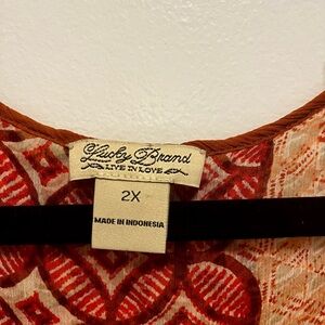 This stylish tunic from Lucky Brand features a cream base with a chic tie front design. The tunic's relaxed fit and tunic-length sleeves make it perfect for casual outings. Its elegant style is enhanced by subtle textured patterns, offering a sophisticated look.