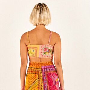 NWT colorful top. Adjustable straps, ties in front to adjust to bust size.