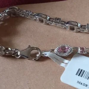 Nwt Genuine Morro Redondo Pink Toumaline Bracelet in Platinum over Sterling Silver. 8.75 g. 2.25 ctw.