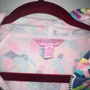 Vibrant pullover with a quarter-zip design. Features a colorful abstract pattern.