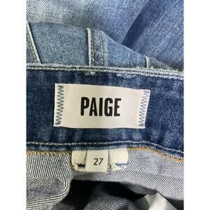 Paige 'Sasha' Blue Denim Jean Size 27: zip fly with button closure, 5-pocket design, light whiskering and faded denim fabric.