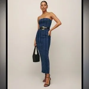 Reformation Anais Strapless Denim Midi Dress