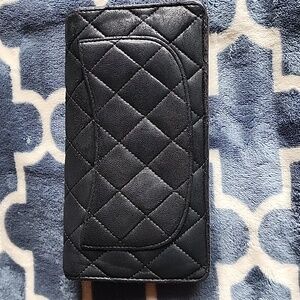 Chanel Black Diamond Stitch Leather Flap Long Wallet