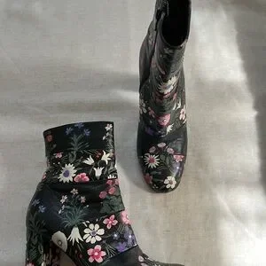 Valentino Garavani floral leather booties with zip up closure. Size 37.5, heel is approximately 3.5” size 37.5