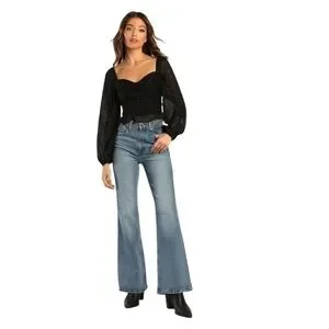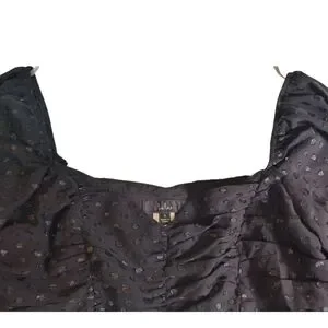 Tags: Lulu's, Lulu's Charmed Black Ruched Clip Dot Balloon Sleeve Top Size Small