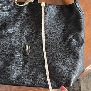 This Dooney & Bourke hobo bag features a sleek black leather design with a luxurious gold-tone hardware accent. Its slouchy silhouette and integrated shoulder strap offer both style and comfort, making it a versatile choice for any occasion. Used only a few times No major flaws that I can see. Non smoking home.