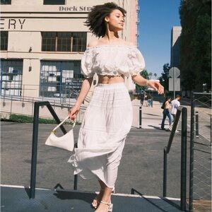Fabrique Off-Shoulder Puff Sleeve Top + Skirt Set in Silk Cotton