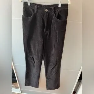 Stylish black corduroy pants with a flattering flare design. Perfect for any occasion.