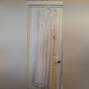 Mac Duggal White Sparkling Gown NWT