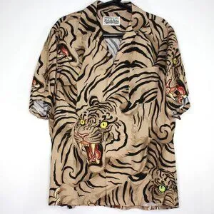 Wacko Maria x Tim Lehi Mens Small Tiger Camp Button Up Hawaiian Shirt RARE A1613