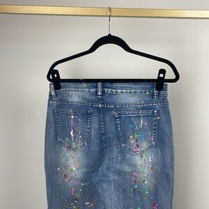 Elevate your wardrobe with these stylish denim jeans, featuring a vibrant splash of color that adds a playful touch to your look. Designed for the modern woman, these jeans effortlessly blend comfort and flair, making them perfect for casual outings or dressing up for a night out. The unique color accents create a standout piece that pairs beautifully with a variety of tops. Embrace your individuality and make a bold statement with these eye-catching denim pants! In good condition it has a slight stain which can be removed. Exact measures in pictures.